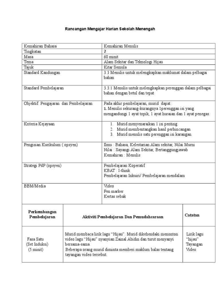 30 Kaedah dan Teknik Pengajaran dan Pembelajaran PdP Rangka kerja aktiviti pengajaran pembelajaran yang bakal dilaksanakan oleh guru di dalam bilik darjah dalam satu jangka waktu yang telah ditetapkan dipanggil sebagai Rancangan Pengajaran Harian RPH. Jagalah Alam Kita Hasil pembelajaran. Berikut merupakan koleksi rph bahasa melayu tahun 2.