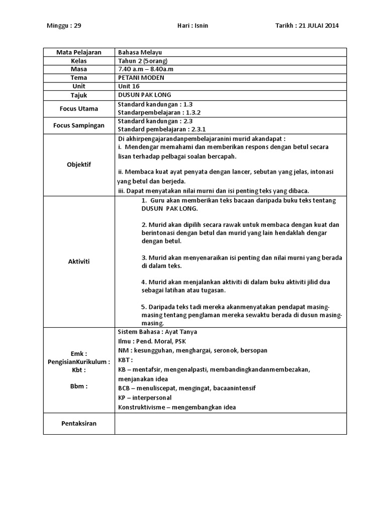 RPH BM Tahun 3. Templat Rancangan Pengajaran Harian Rph Pembelajaran Abad Ke 21 Pak 21. RPH Bahasa Melayu Tahun 5 2019.